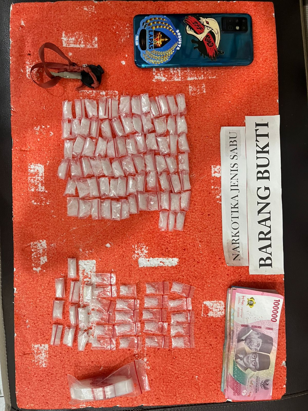 Selain narkotika, petugas juga mengamankan barang bukti lainnya berupa uang tunai sebesar Rp2.100.000, satu unit handphone android, satu tas samping warna hitam, satu pack plastik klip bening kosong, serta satu unit sepeda motor Honda Beat yang diduga digunakan untuk menunjang aktivitas peredaran narkotika.